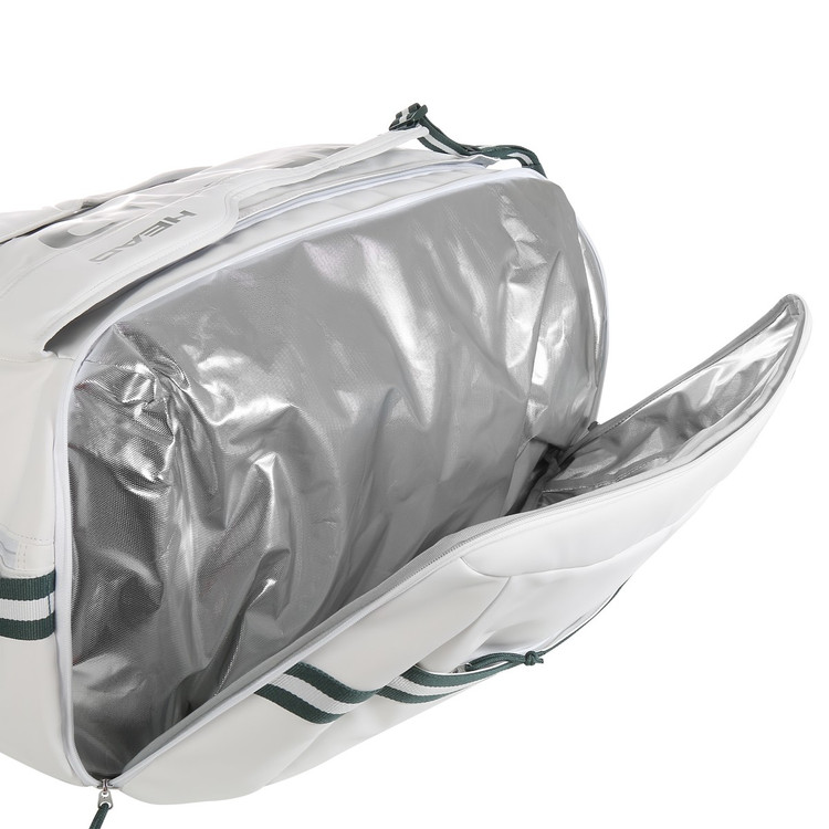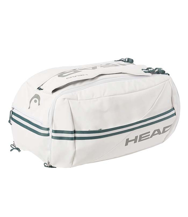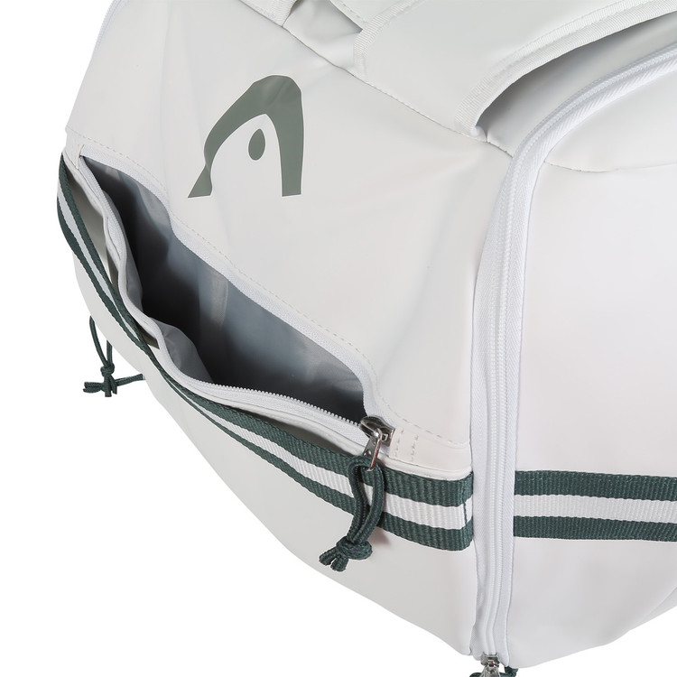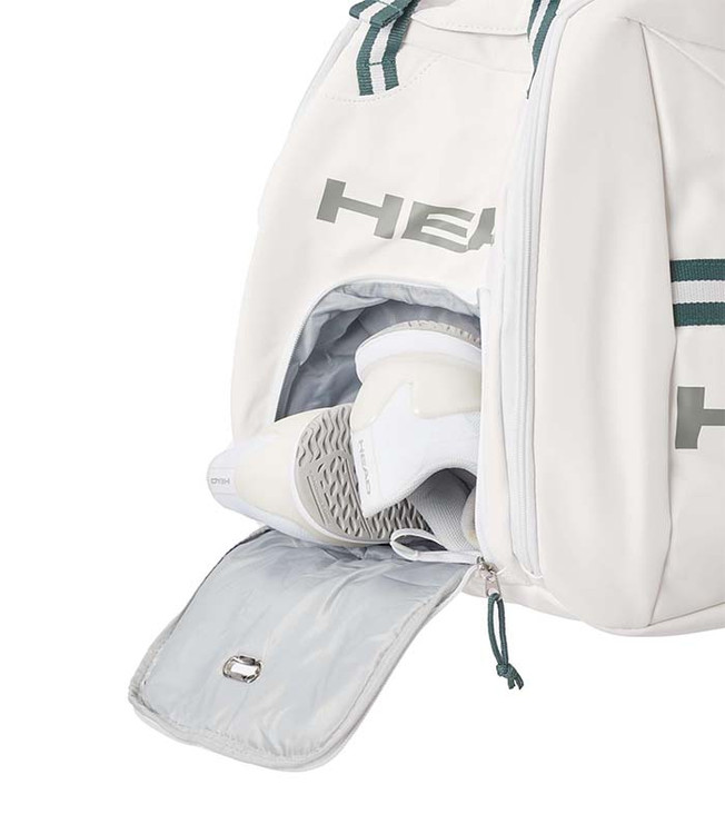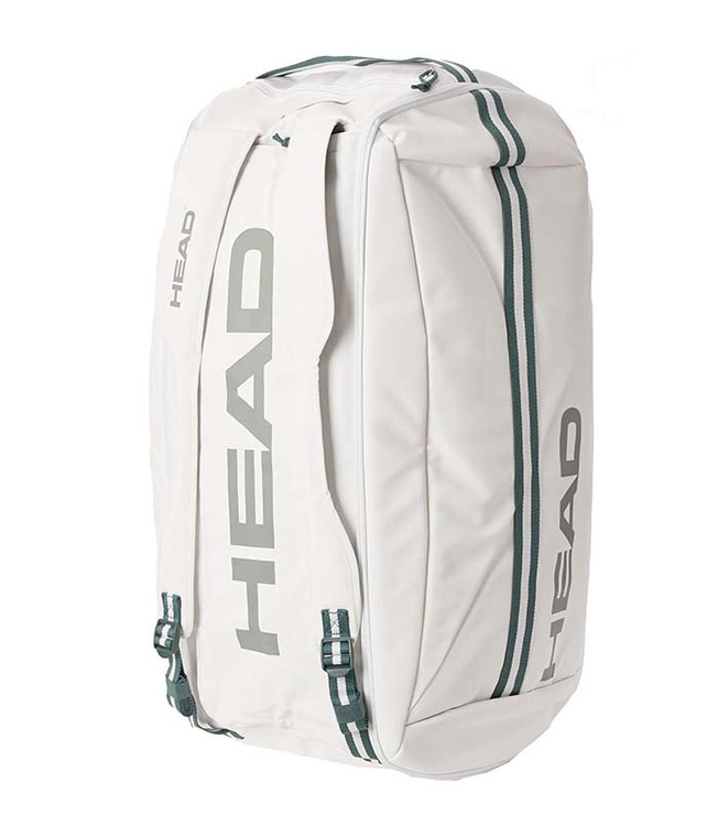 ساک تنیس هد Pro X Duffle Bag XL White محصول برند هد گنجایش ۱۲ راکت را دارد. یکی از مزایای این محصول این است که فضای داخل آن را برای مرتب کردن وسایل میتوان به بخشهای کوچکتر تقسیم کرد. تنیسفا این ساک همچنین مجهز به عایق حرارتی CCT+ است و راکتها تحت تأثیر دمای بیرون قرار نمیگیرند. وجود یک محفظه مخصوص نگهداری کفش و چندین جیب این محصول را به انتخابی مناسب برای بازیکنان تبدیل میکند. طراحی این ساک با الهام از رقابتهای گرند اسلم ویمبلدون انجام شده و جلوه زیبایی به آن بخشیده است.