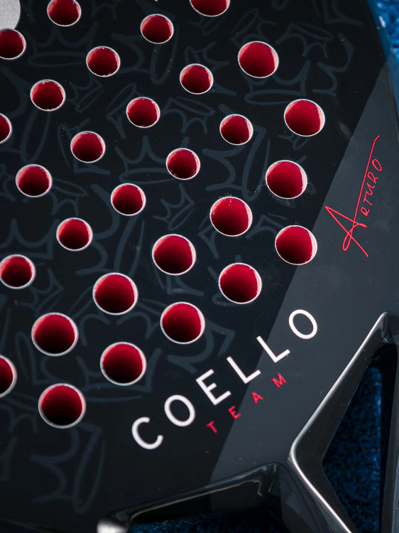 قدرت به آسانی میآید با راکت پدل COELLO TEAM 2026، که در همکاری با آرتورو کوئیلو، شماره یک جهان، طراحی و توسعه یافته است. این مدل با سفتی نرمتر از مجموعه انحصاری آرتورو کوئیلو، برای بازیکنان متوسط و پیشرفتهای ساخته شده که به دنبال قدرت آسان در سرعتهای پایینتر توپ، راحتی و پایداری هنگام حرکت به سمت تور برای حمله هستند. طراحی ظریف این راکت الماسی شکل شامل ملحقات شخصی، مانند لوگوی تاج و امضای کینگ آرتورو است و پایانی براق و چشمگیر دارد.