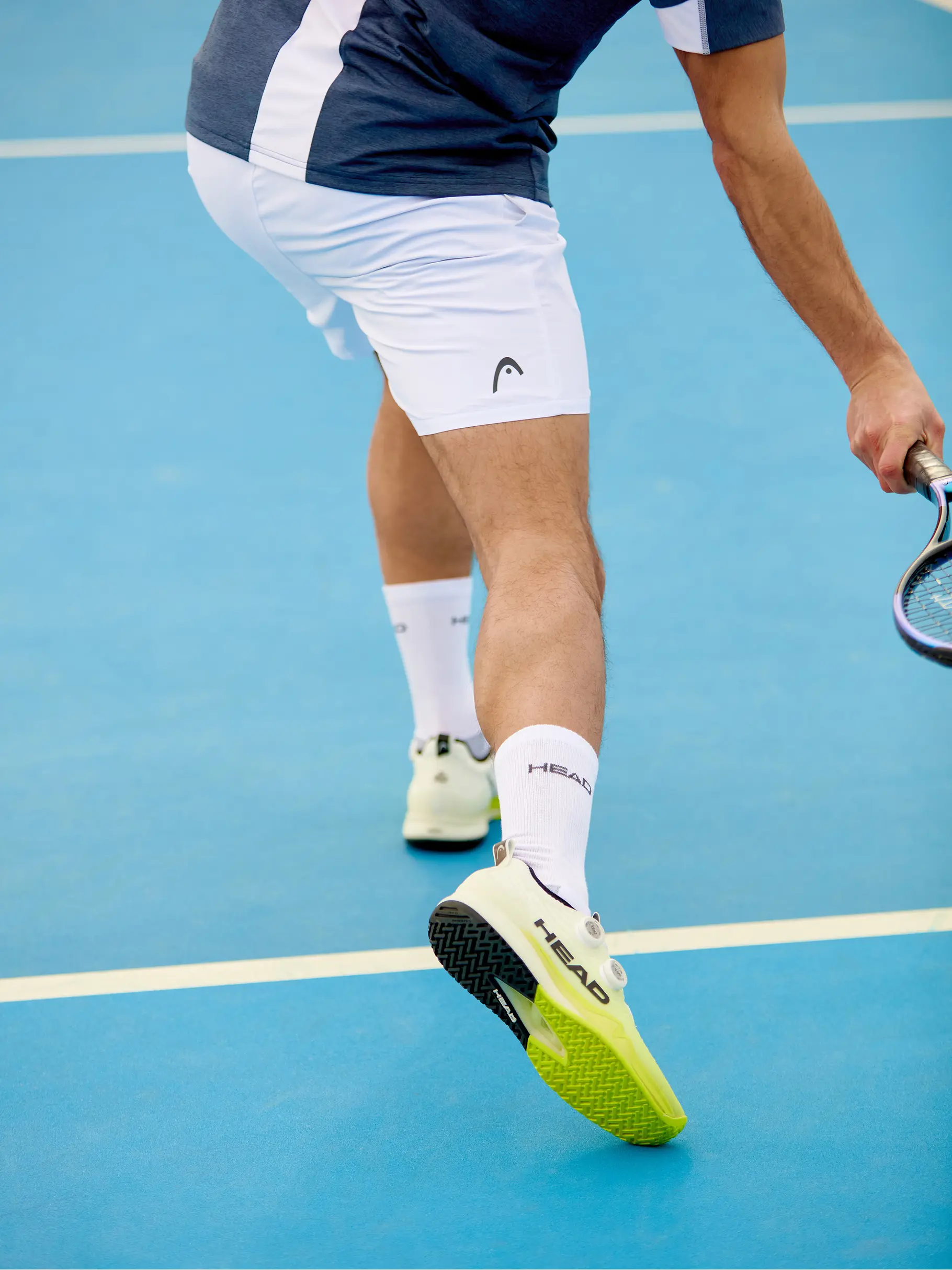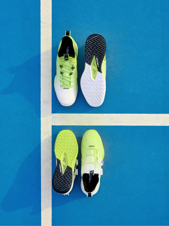 | فناوری کف خارجی (Outsole) | لاستیک Hybrasion+ بدون رد HEAD: برای چسبندگی و دوام برتر. طرح آج ترکیبی (Hybrid Tread): مناسب برای انواع سطوح تنیس. بهینهسازی: • نواحی Durability Zones برای دوام بیشتر در زمینهای سخت. • نواحی Open Tread برای چسبندگی حداکثری. |